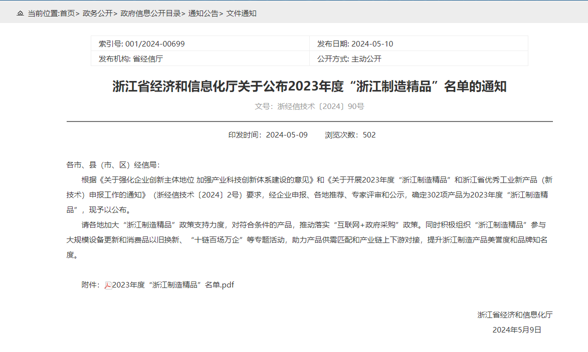 榜上有名丨爱力浦产品入选2023年度“浙江制造精品”