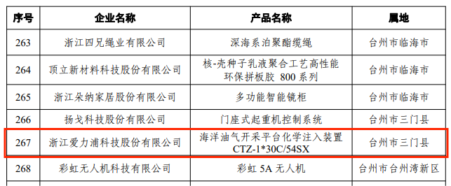 近日,浙江省经济和信息化厅公布2023年度“浙江制造精品”名单,爱力浦产品“海洋油气开采平台化学注入装置”成功入选!
